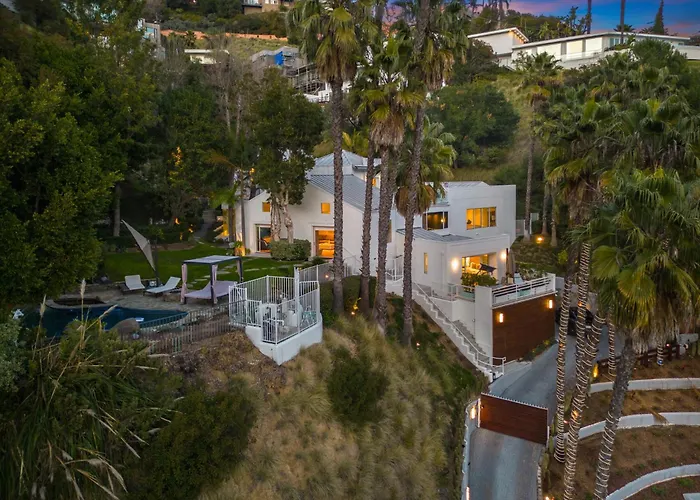 Die 7-Zimmer-Ferienwohnung Rising Glen liegt im Stadtviertel Hollywood und empfängt seine Gäste mit einer Sauna und einem Außenschwimmbad. Hollywood Schriftzug liegt nur 6 km vom Apartment entfernt, während die Bushaltestelle Laurel Canyon & Lookout Mountain in circa 10 Minuten zu Fuß zu erreichen ist.